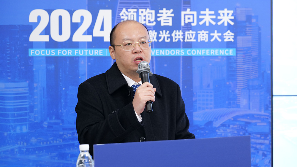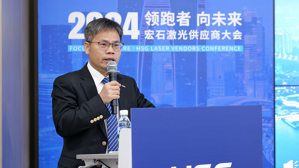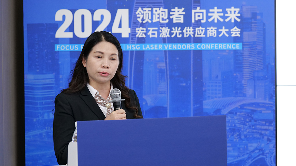 隨后,宏石激光董事、供應鏈中心負責人劉洋代表發(fā)言,指出宏石激光2024年在產(chǎn)能提升、交期優(yōu)化、生產(chǎn)基地定位明確及精益生產(chǎn)推進等方面取得顯著成效,產(chǎn)品線進一步豐富,市場滲透力持續(xù)增強。展望2025年,宏石激光將堅持以雙贏為核心理念,圍繞產(chǎn)能增長、效率提升、資源優(yōu)化及交期縮短等重點,全面構(gòu)建具有國際領先水平和國內(nèi)核心競爭力的供應鏈體系,與合作伙伴攜手共創(chuàng)發(fā)展新局面。