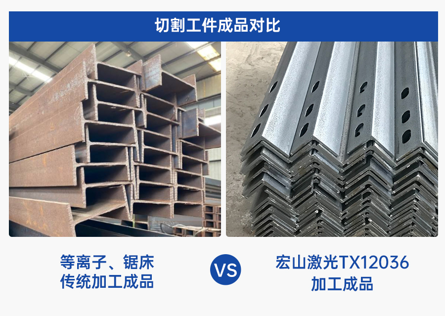 “沒買這個設(shè)備(TX12036)之前我們一直用平臺等離子+鋸床切割,效果差,效率慢,一個項目下來最少要割個七八天。特別是切割工型鋼的鎖扣,這個是大梁組裝焊接的位置,這個位置要求比較高,焊接難度比較大,等離子+鋸床切割的效果一般,品質(zhì)控制難度大,宏山激光的這臺設(shè)備解決了我們的難處,效率提高的同時,品質(zhì)也得到了較大的提升。”