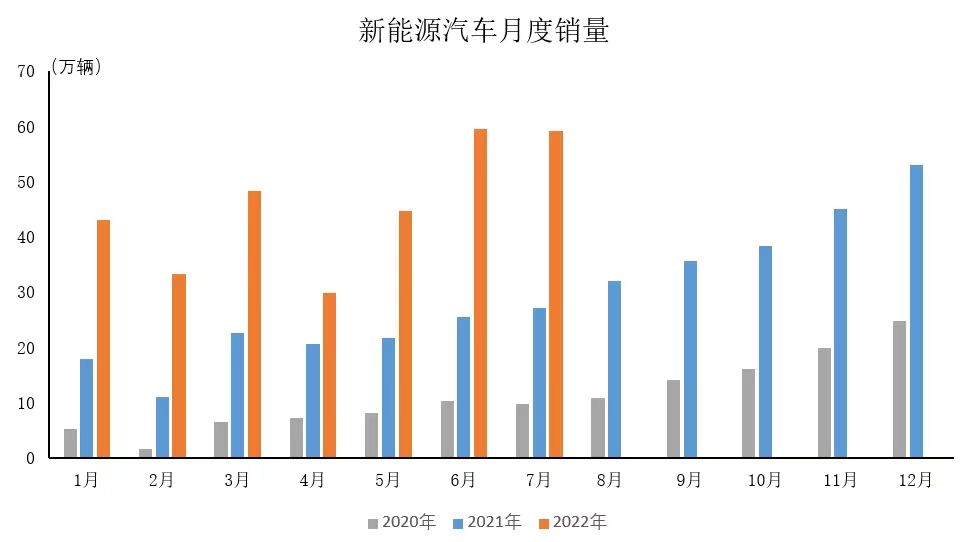 2020-2022年中國汽車月度出口量、新能源汽車月度銷量